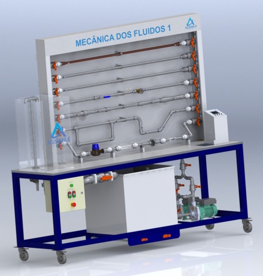 Destinado ao estudo de perdas de carga em tubulações, medição de vazão por diferentes princípios e associação de bombas em série e paralela. Composição: